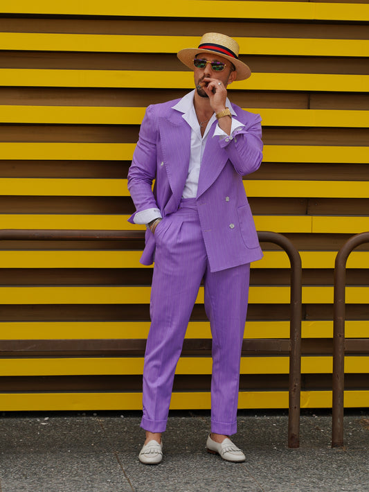 Abito Extensive doppiopetto petto a lancia lilla gessato