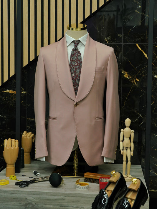 Abito harmonious collo a scialle rosa antico con bottoni oro