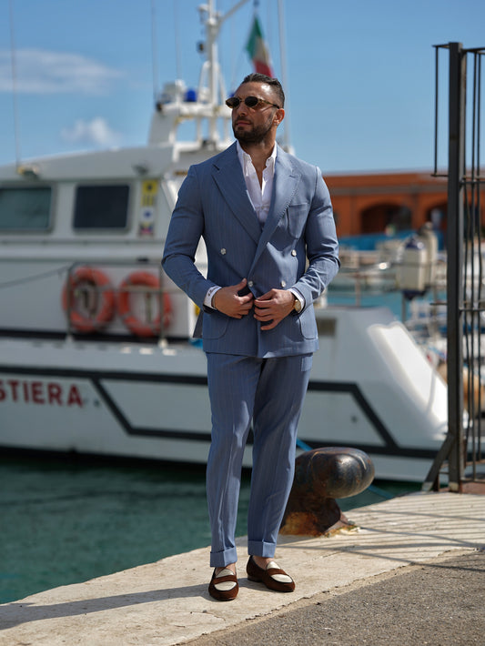 Abito harmonious doppiopetto petto napoli azzurro gessato