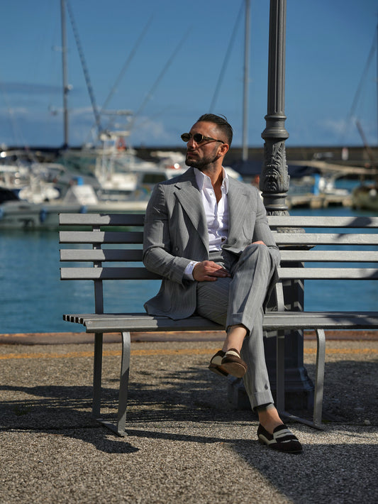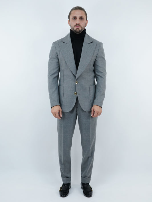 Abito extensive monopetto petto a lancia diagonale cenere con bottoni oro