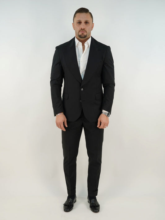 Abito easy doppiopetto con giacca senza collo solaro nero