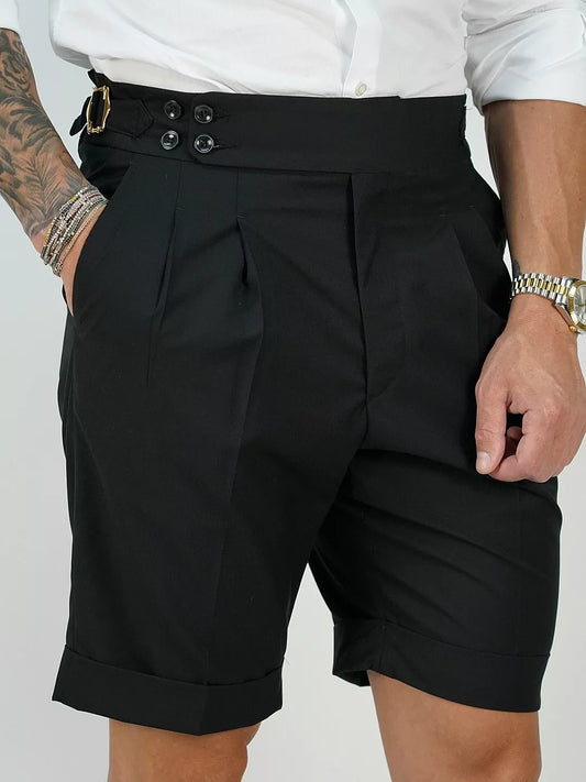 Bermuda nero con 4 bottoni e fibbie stringenti laterali