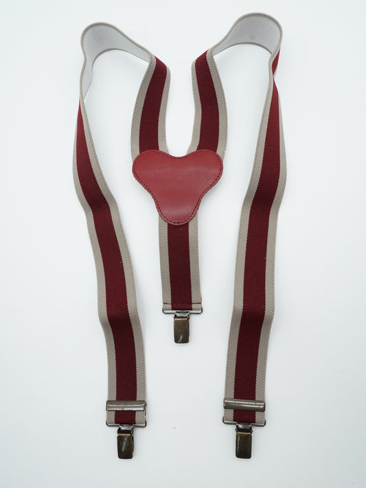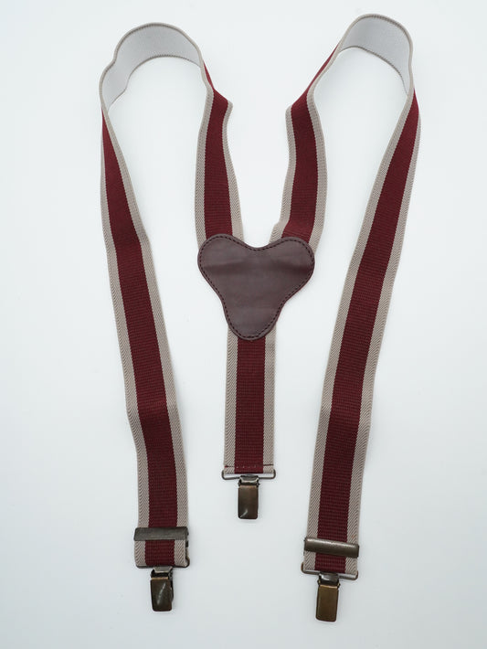 Bretelle con clip Bicolore Bordeaux e Beige con pelle Testa di Moro
