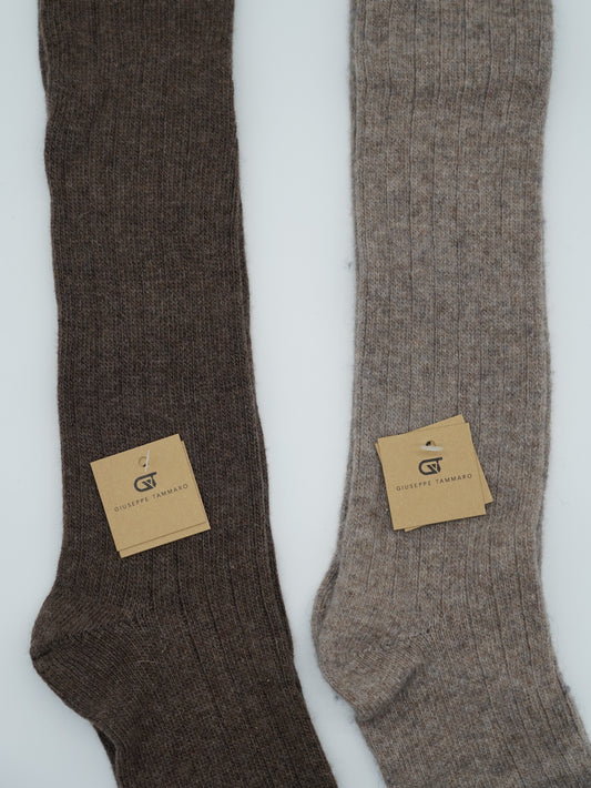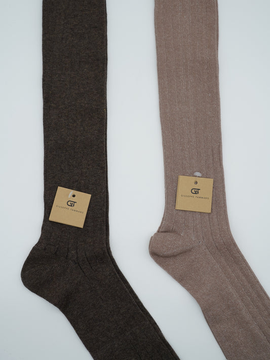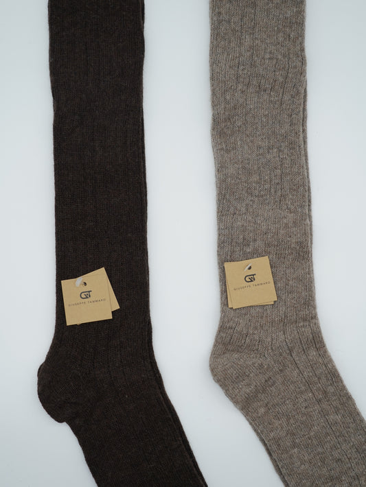 Calze lunghe a costa in misto cashmere testa di moro/beige