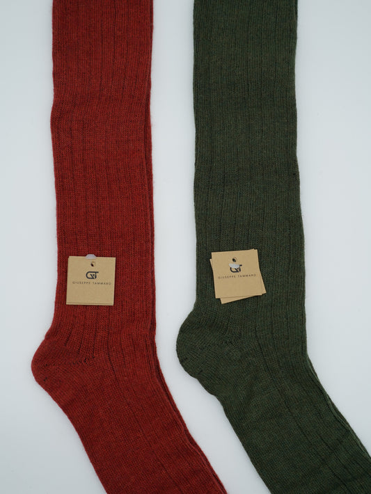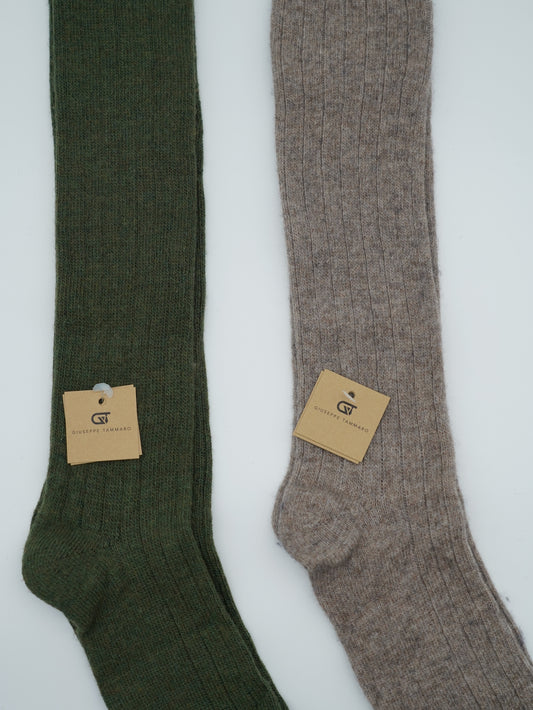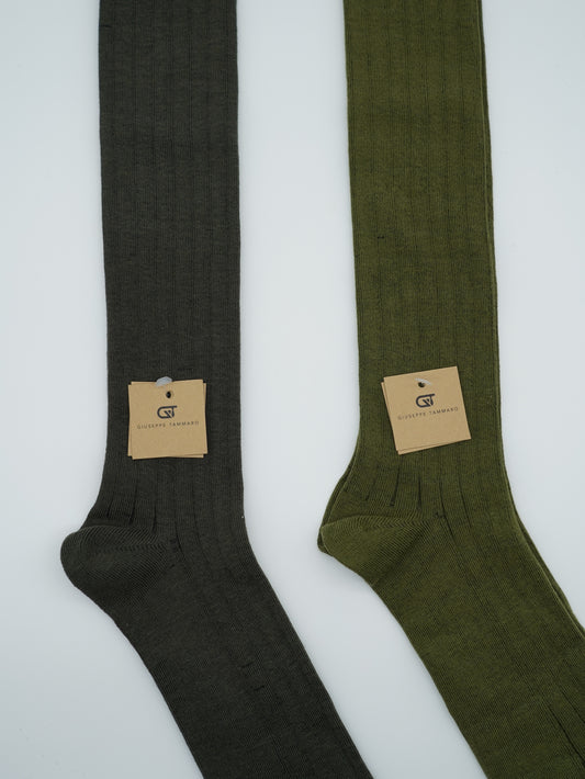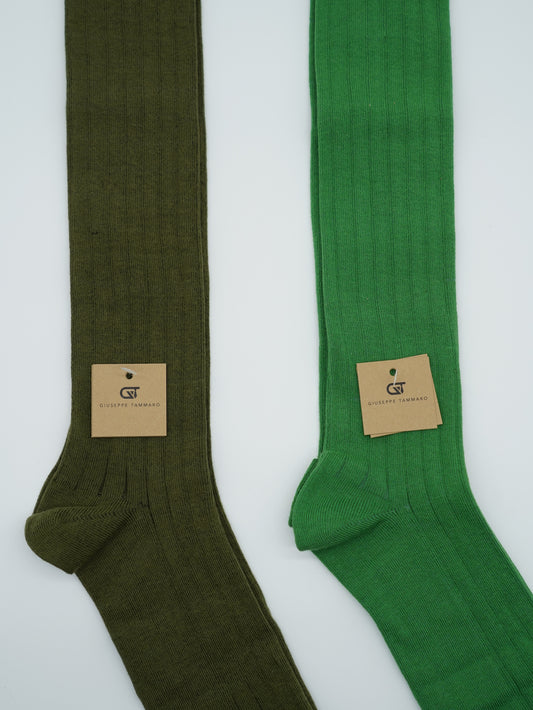 Calze lunghe a costa in caldo cotone verde militare/verde mela