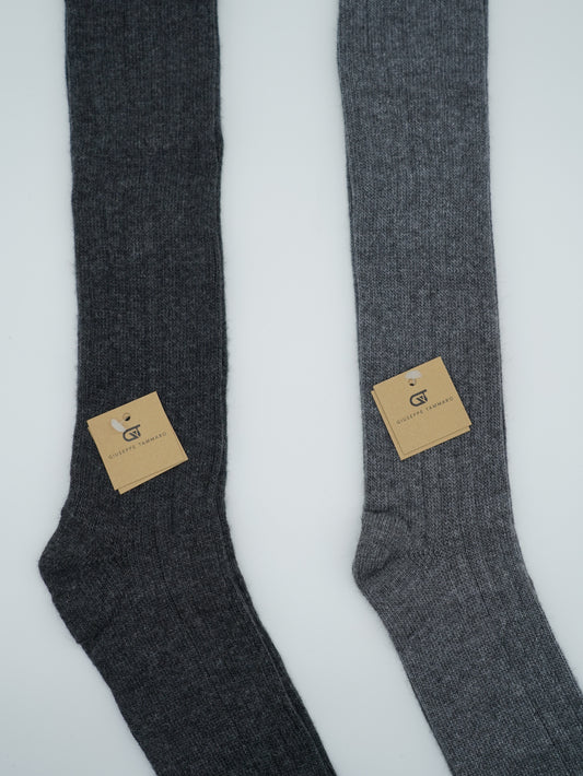 Calze lunghe a costa in misto cashmere grigio chiaro/grigio scuro
