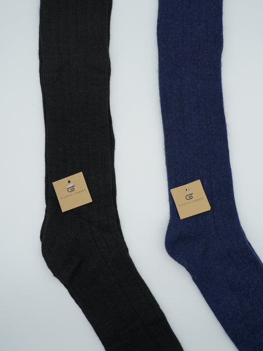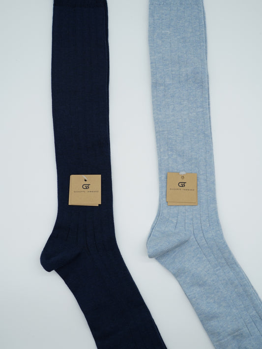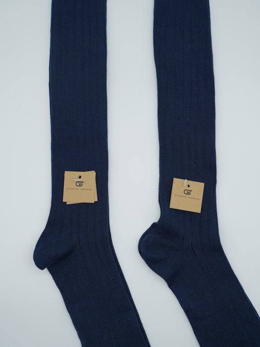 Calze lunghe a costa in caldo cotone blu/azzurro
