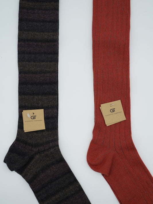 Calze lunghe a costa in misto cashmere tabacco/ocra