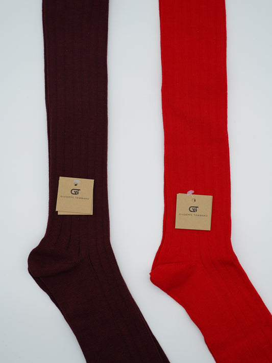 Calze lunghe a costa in caldo cotone bordeaux/rosso