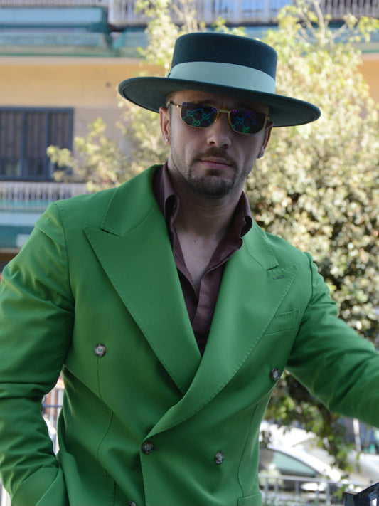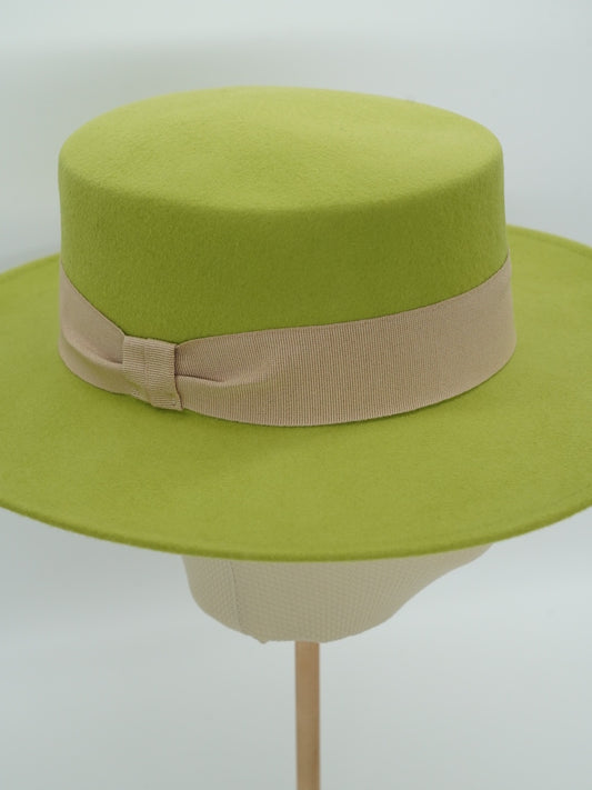 Cappello a cilindro piatto in feltro verde trifoglio
