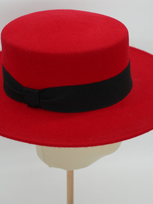 Cappello a cilindro piatto in feltro burgundy