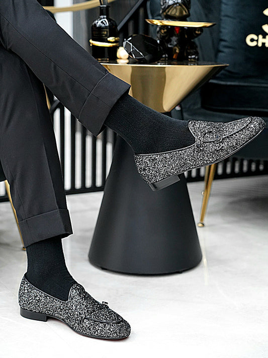 Mocassino Glitterato Nero con applicazioni in Pietra