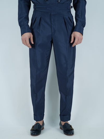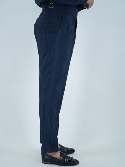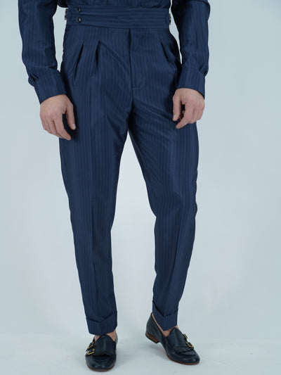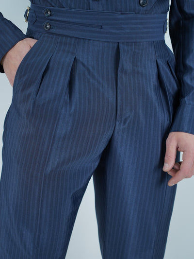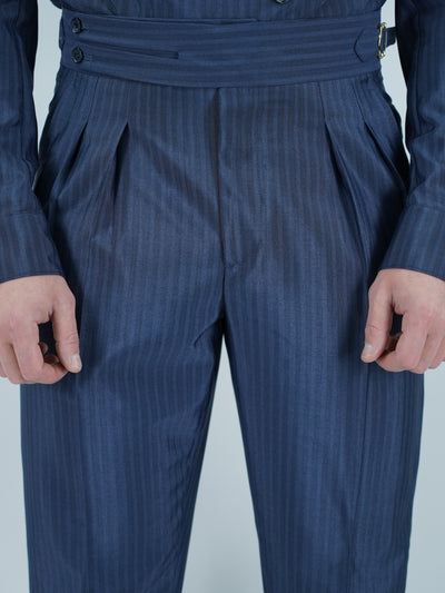 Gurkha solaro blu con bottoni oro e fibbie stringenti laterali