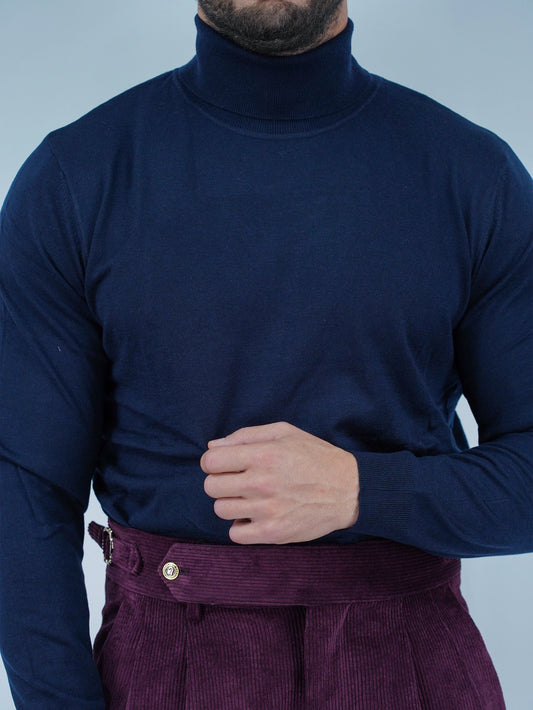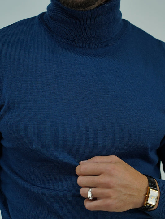 Dolcevita in filo di lana blu zaffiro