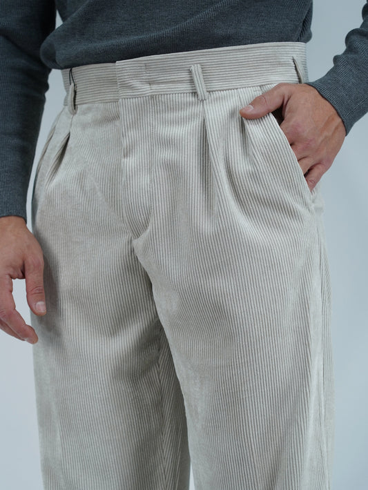 Gurkha con passanti in velluto a coste avorio fondo 23cm