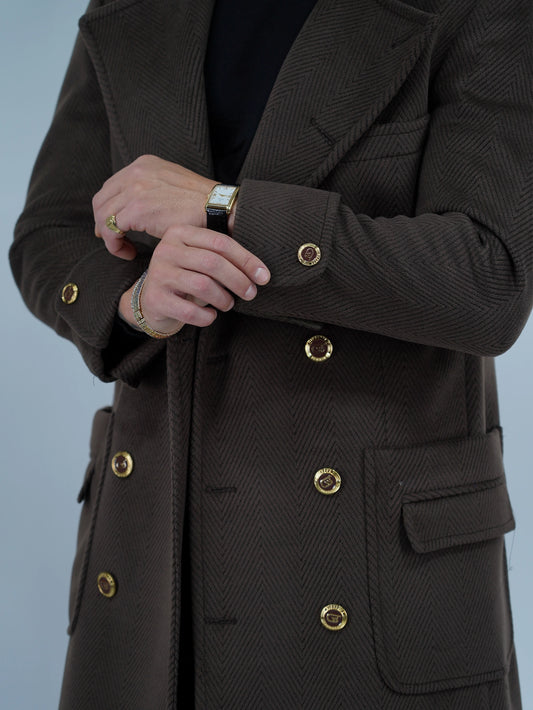 Mocassino tubolare in pelle scamosciata testa di moro con arriccio e fibbia GT in metallo oro