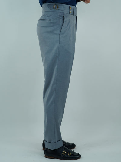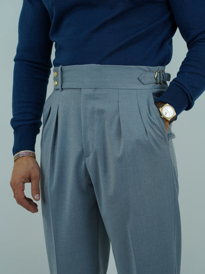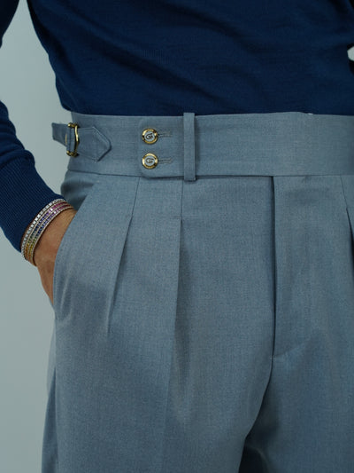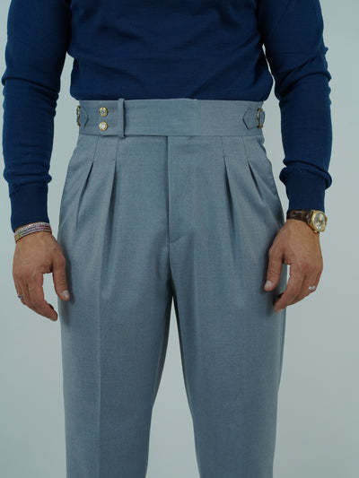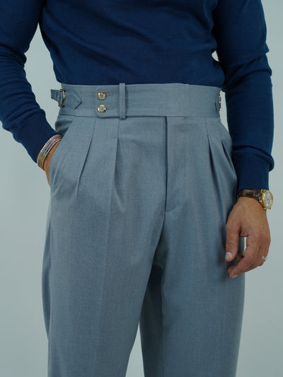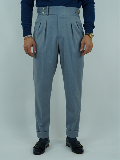 Gurkha azzurro polvere con bottoni oro e fibbie stringenti laterali