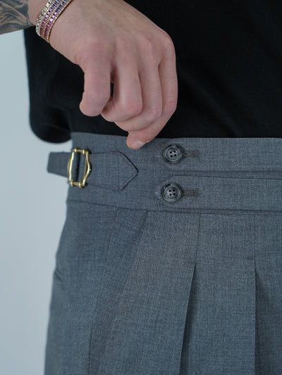 Gurkha biforcato grigio con fibbie stringenti laterali