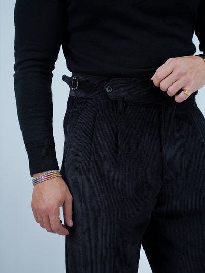 Gurkha con passanti in velluto a coste nero fondo 23cm