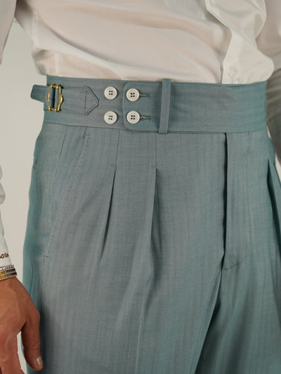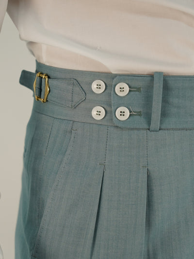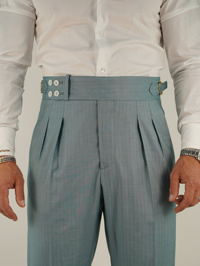 Gurkha verde tiffany con 4 bottoni e fibbie stringenti laterali