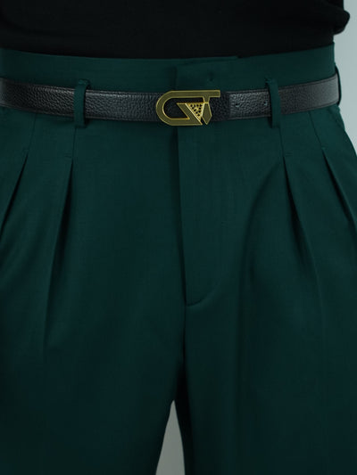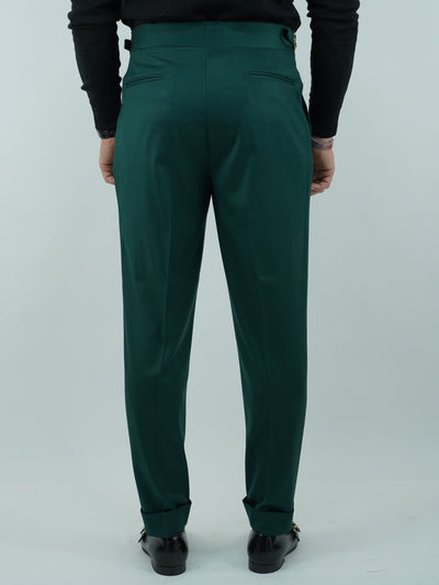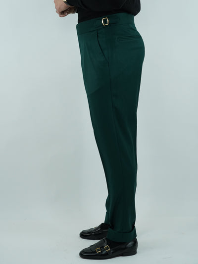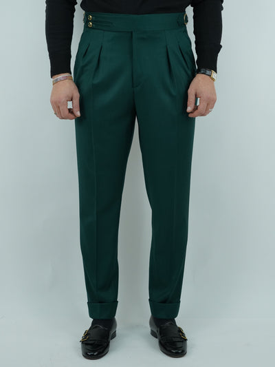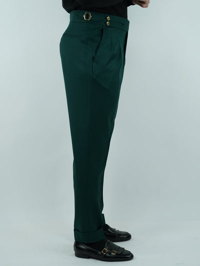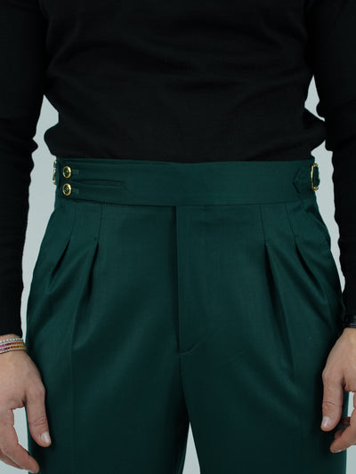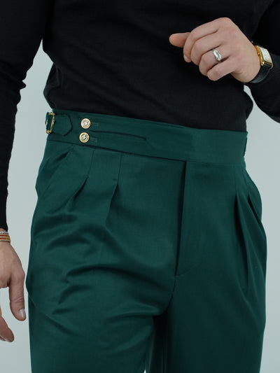 Gurkha verde biforcato con bottoni oro e fibbie stringenti laterali
